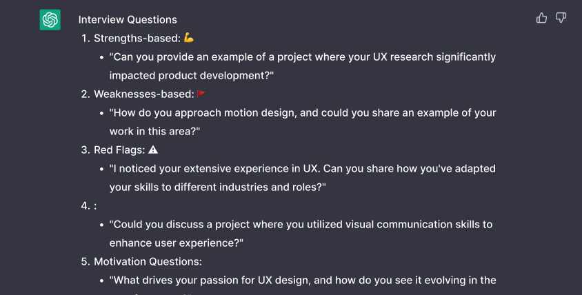 1. Upload the resume and job description2. Click on the Compare thie CV to the Job ad button3. Type "/questions"