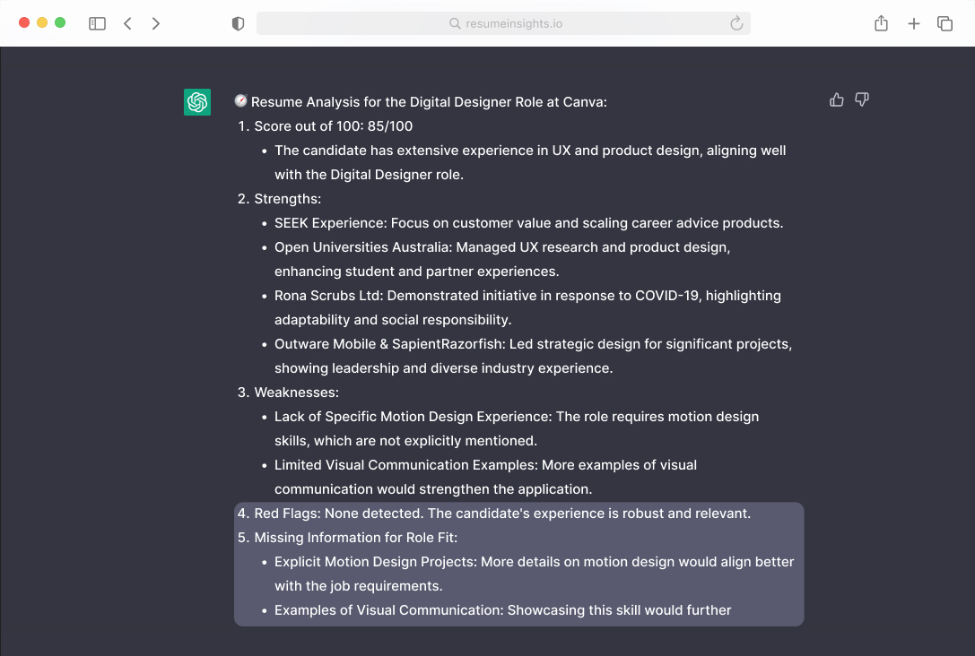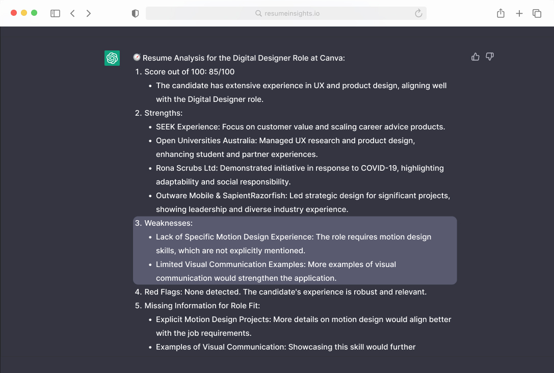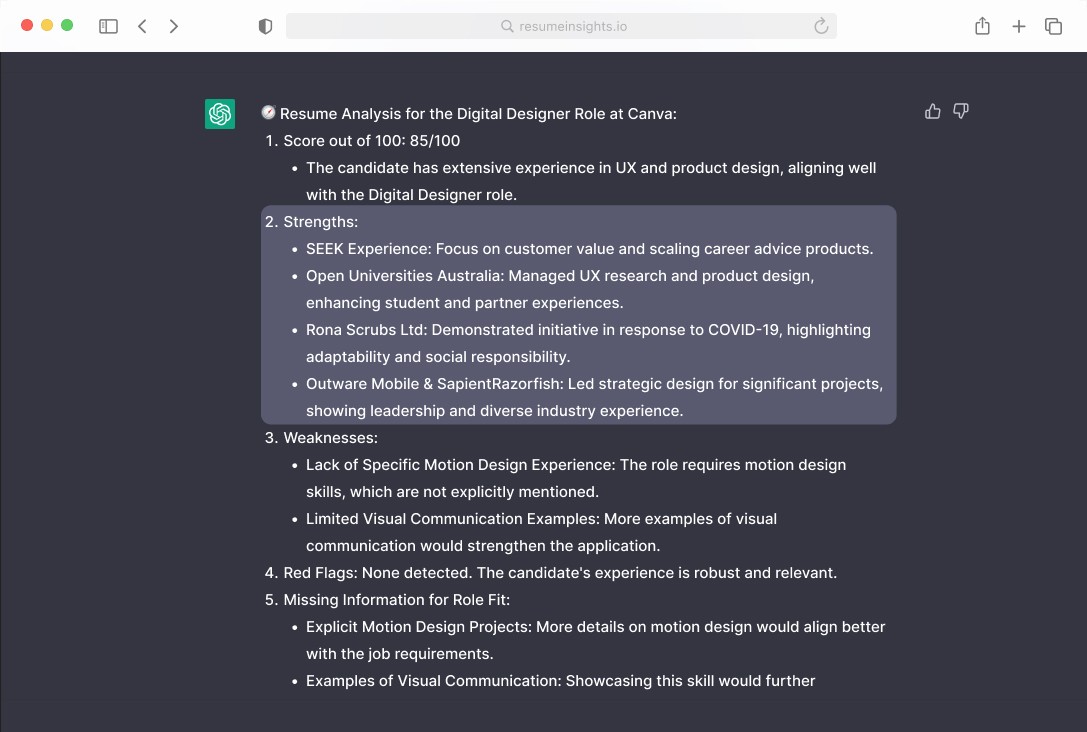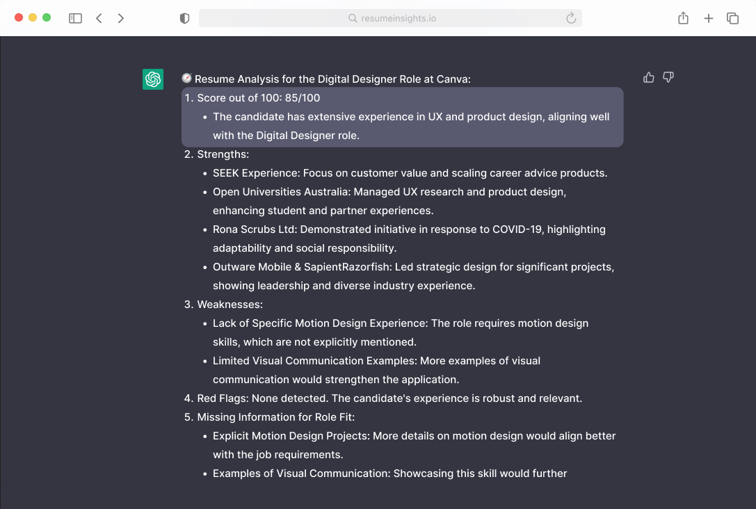 Resume Insights is recommended to be used with a ChatGPT Plus Subscription with GPT-4 Code Interpreter or above models for optimal performance.